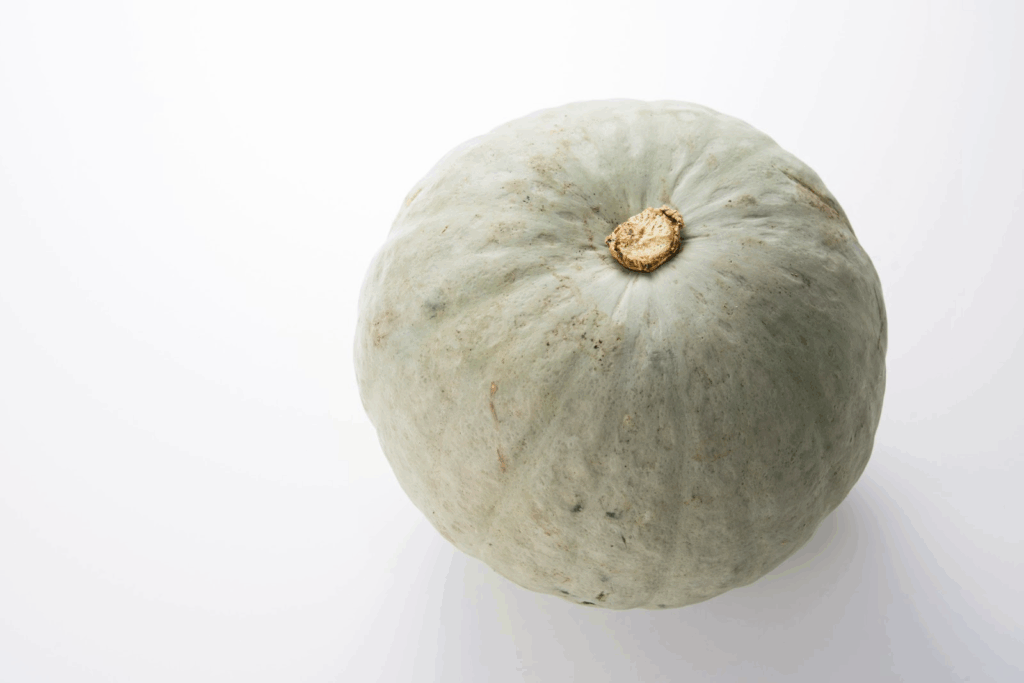 雪化粧かぼちゃは、主に北海道で生産され、まるで雪化粧をしたかのような白い皮と、甘みの強いホクホク食感が特徴です。