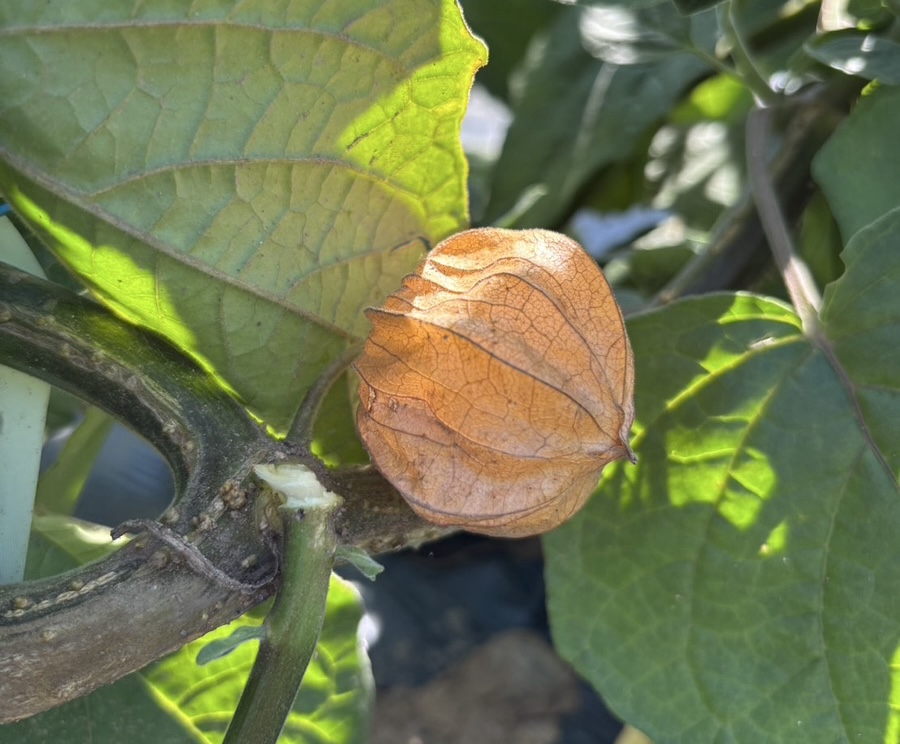 フルーツほおずきの魅力は、味だけではありません。 黄金色の果実と、それを取り囲む紙のようなガクは、見た目にも華やか。